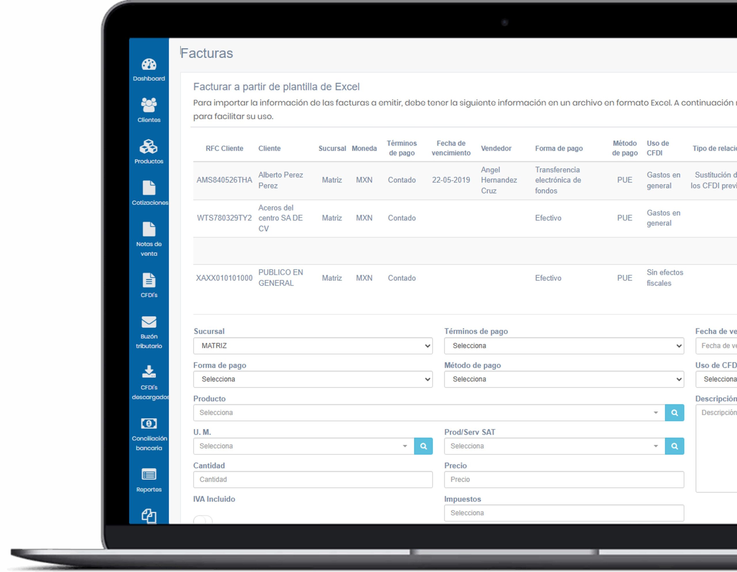 Sube la plantilla con la información detalla sobre las facturas a timbrar.